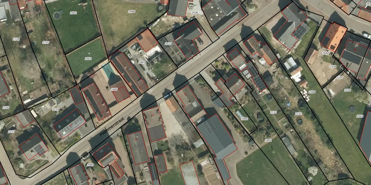 Hammerstraat 9 is gelegen op kadastraal perceel MLK00C1696. Deze kadastrale aanduiding is uniek en wordt gebruikt door het Kadaster om eigendomsrechten en andere zakelijke rechten vast te leggen. Het perceel maakt onderdeel uit van de kadastrale gemeente Melick en Herkenbosch.
