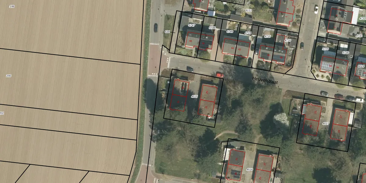 Het perceel waarop Heuvelstraat 29 staat heeft een oppervlakte van 775 m². Dit is een groot perceel. De perceeloppervlakte wordt geregistreerd door het Kadaster. Gedetailleerde informatie over de maten van dit perceel kunt u vinden in het rapport Kadastrale kaart met maatvoering van Heuvelstraat 29.