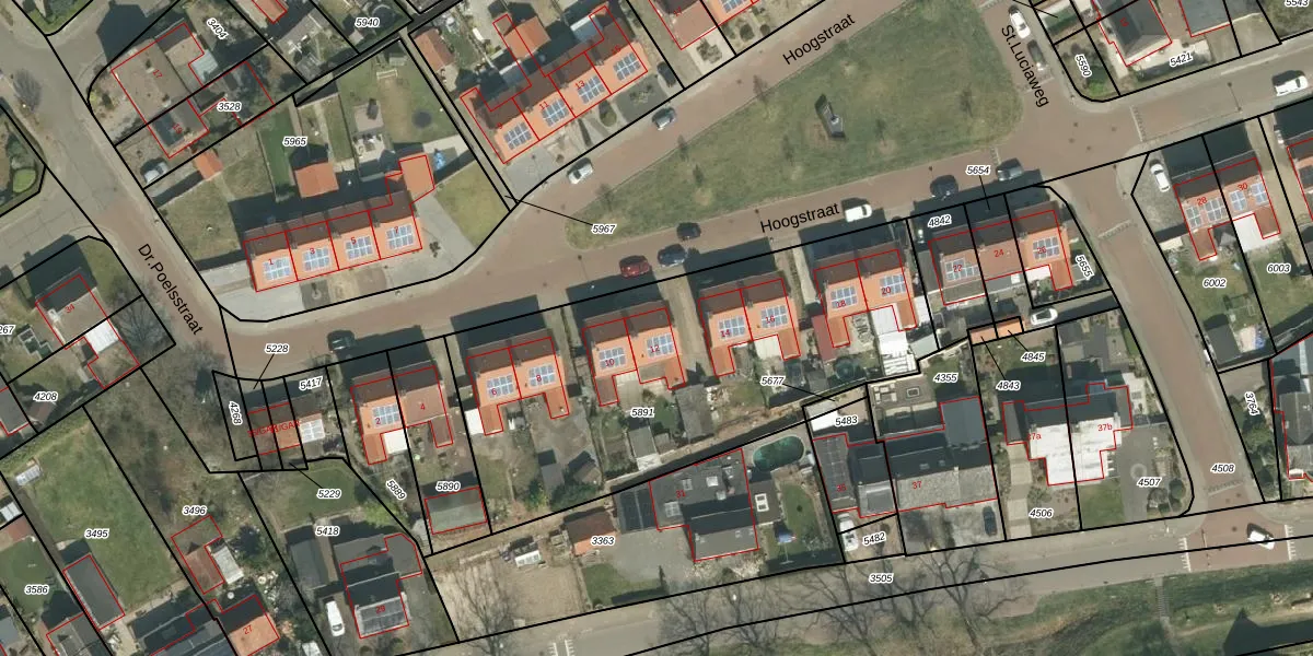 Het perceel waarop Hoogstraat 12 staat heeft een oppervlakte van 1975 m². Dit is een zeer groot perceel. De perceeloppervlakte wordt geregistreerd door het Kadaster. Gedetailleerde informatie over de maten van dit perceel kunt u vinden in het rapport Kadastrale kaart met maatvoering van Hoogstraat 12.