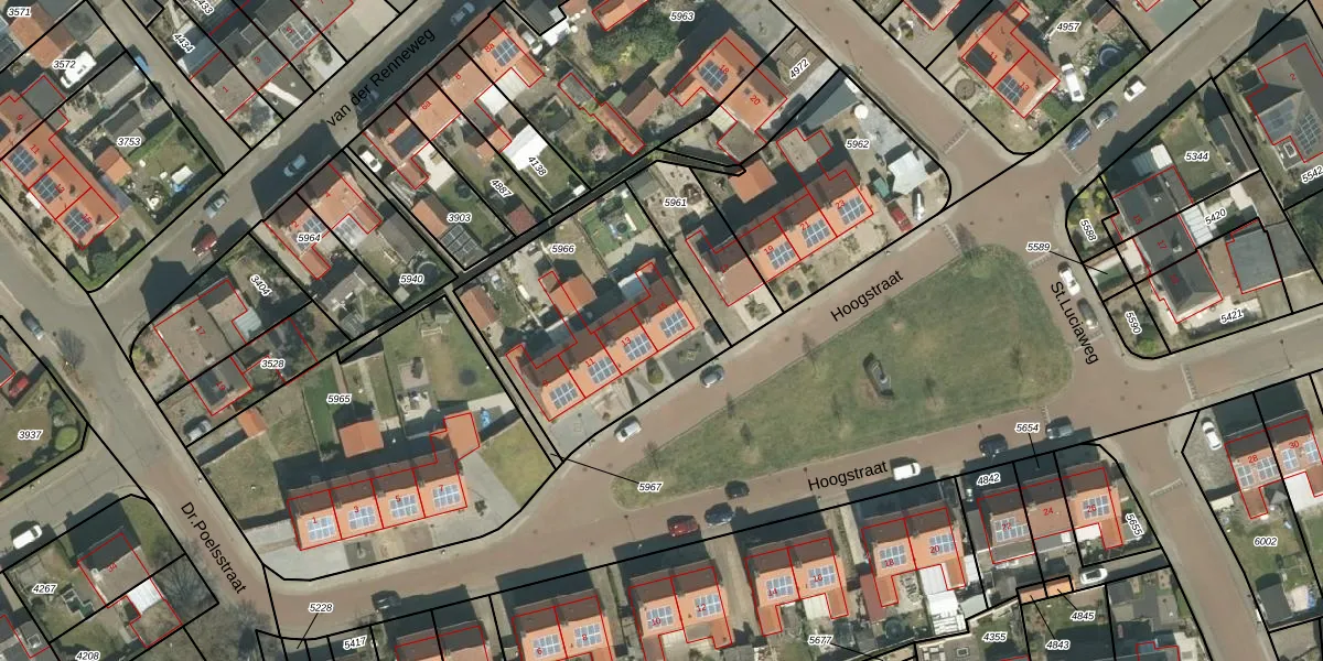 Het perceel waarop Hoogstraat 15 staat heeft een oppervlakte van 930 m². Dit is een groot perceel. De perceeloppervlakte wordt geregistreerd door het Kadaster. Gedetailleerde informatie over de maten van dit perceel kunt u vinden in het rapport Kadastrale kaart met maatvoering van Hoogstraat 15.