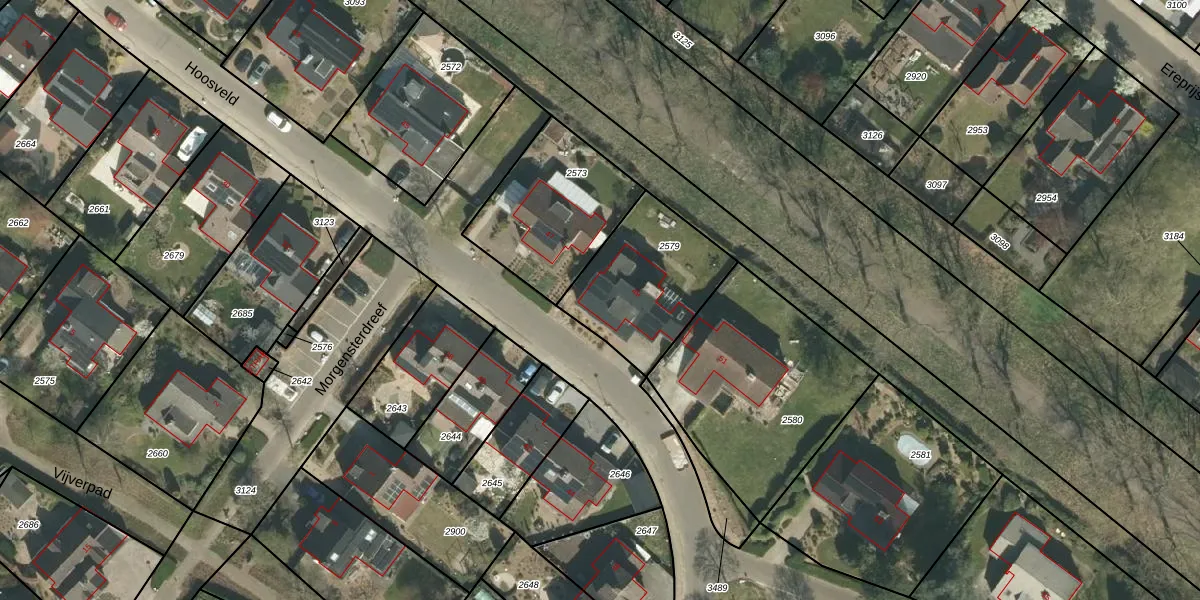 Het perceel waarop Hoosveld 49 staat heeft een oppervlakte van 470 m². Dit is een groot perceel. De perceeloppervlakte wordt geregistreerd door het Kadaster. Gedetailleerde informatie over de maten van dit perceel kunt u vinden in het rapport Kadastrale kaart met maatvoering van Hoosveld 49.