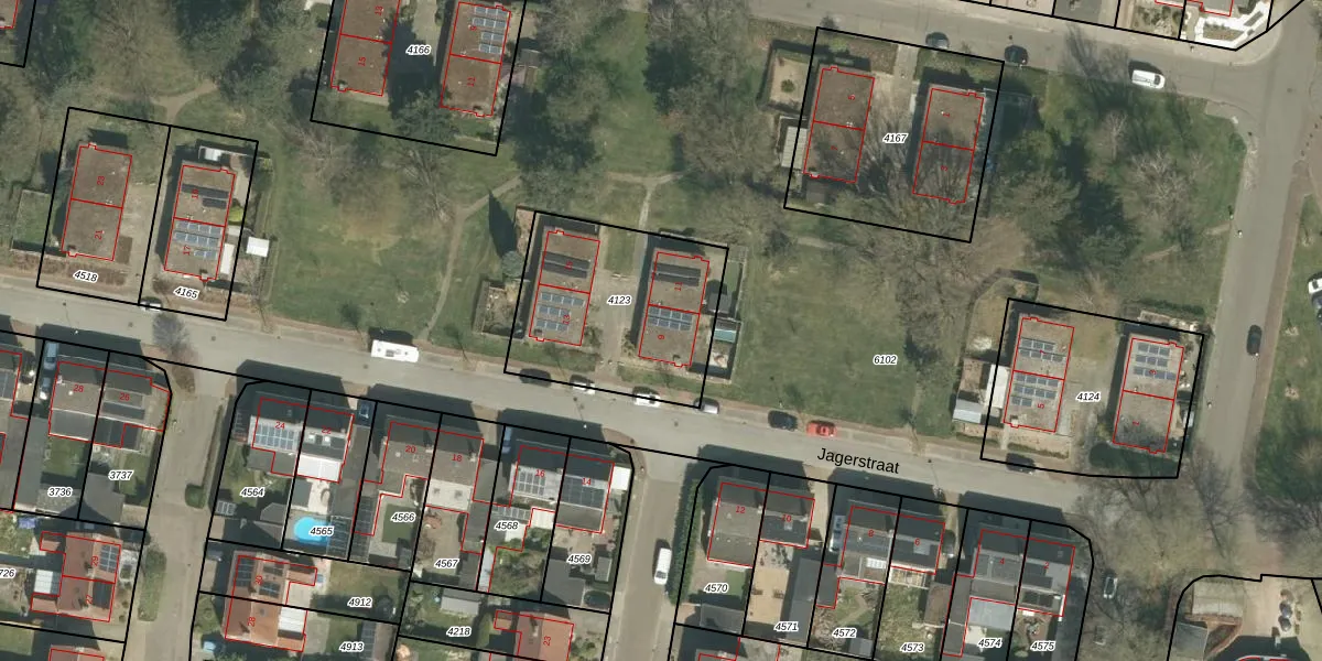 Het perceel waarop Jagerstraat 9 staat heeft een oppervlakte van 728 m². Dit is een groot perceel. De perceeloppervlakte wordt geregistreerd door het Kadaster. Gedetailleerde informatie over de maten van dit perceel kunt u vinden in het rapport Kadastrale kaart met maatvoering van Jagerstraat 9.