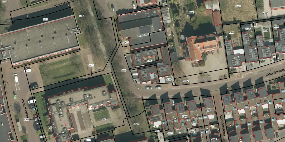 Gebruik de zoekbalk of klik op een perceel voor informatie over de adressen binnen dit perceel.