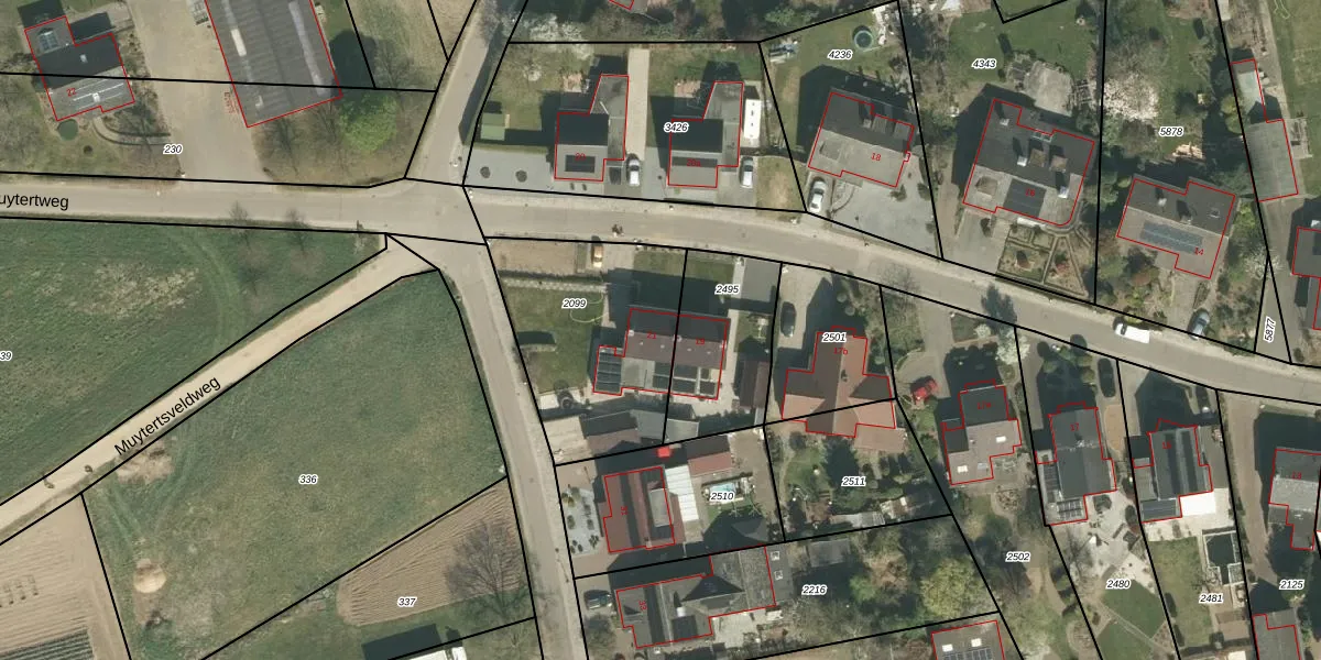 Muytertweg 21 is gelegen op kadastraal perceel MLK00C2099. Deze kadastrale aanduiding is uniek en wordt gebruikt door het Kadaster om eigendomsrechten en andere zakelijke rechten vast te leggen. Het perceel maakt onderdeel uit van de kadastrale gemeente Melick en Herkenbosch.