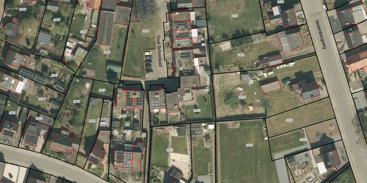 Oud Schoolpad 21 is gelegen op kadastraal perceel MLK00C2410. Deze kadastrale aanduiding is uniek en wordt gebruikt door het Kadaster om eigendomsrechten en andere zakelijke rechten vast te leggen. Het perceel maakt onderdeel uit van de kadastrale gemeente Melick en Herkenbosch.