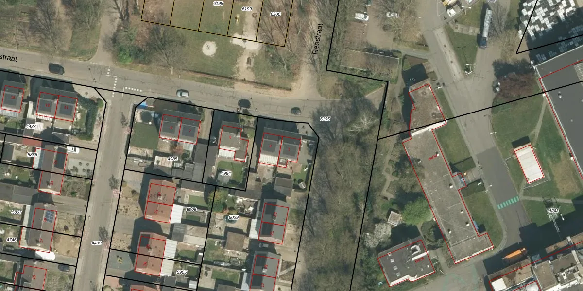 Het perceel waarop Reestraat 1 staat heeft een oppervlakte van 1729 m². Dit is een zeer groot perceel. De perceeloppervlakte wordt geregistreerd door het Kadaster. Gedetailleerde informatie over de maten van dit perceel kunt u vinden in het rapport Kadastrale kaart met maatvoering van Reestraat 1.