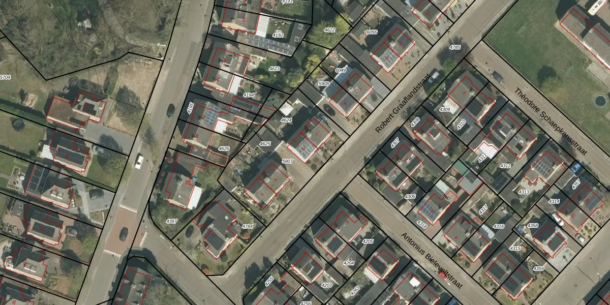 Het perceel waarop Robert Graaflandstraat 5 staat heeft een oppervlakte van 945 m². Dit is een groot perceel. De perceeloppervlakte wordt geregistreerd door het Kadaster. Gedetailleerde informatie over de maten van dit perceel kunt u vinden in het rapport Kadastrale kaart met maatvoering van Robert Graaflandstraat 5.