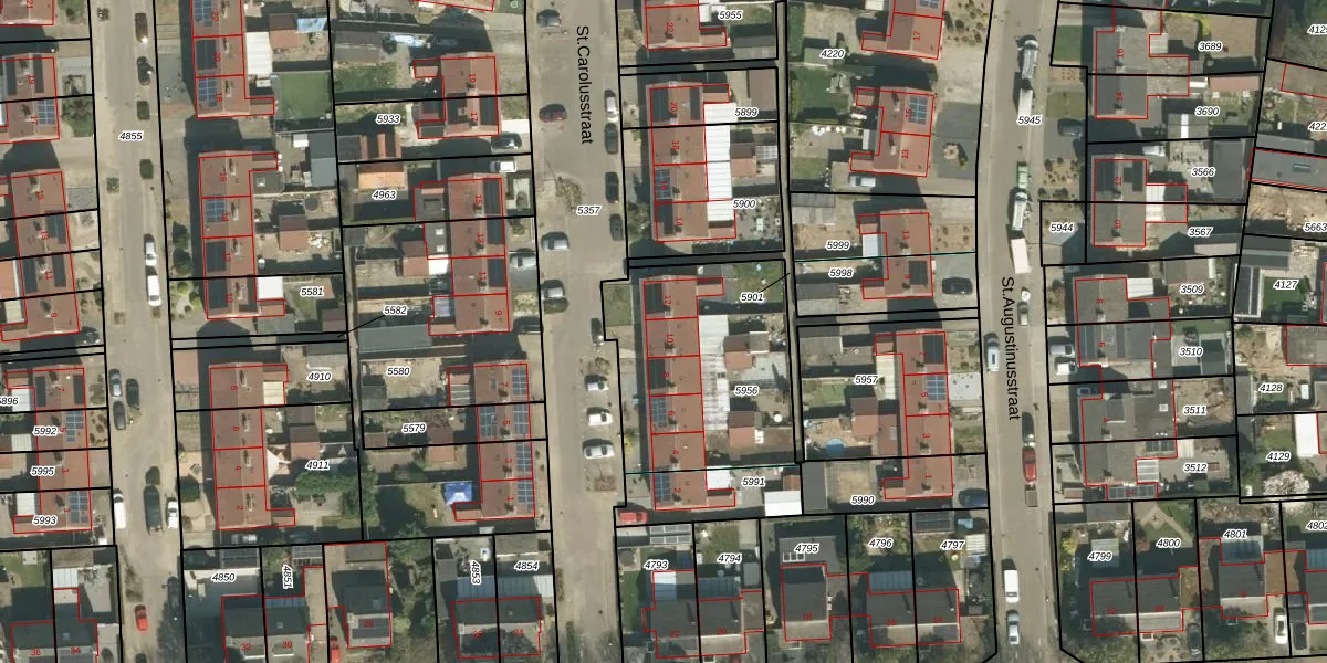 Het perceel waarop St.Carolusstraat 10 staat heeft een oppervlakte van 818 m². Dit is een groot perceel. De perceeloppervlakte wordt geregistreerd door het Kadaster. Gedetailleerde informatie over de maten van dit perceel kunt u vinden in het rapport Kadastrale kaart met maatvoering van St.Carolusstraat 10.