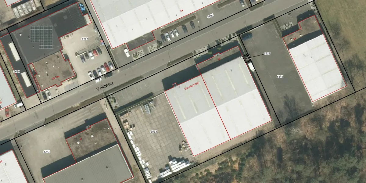 Het perceel waarop Veldweg 35-a staat heeft een oppervlakte van 4380 m². Dit is een zeer groot perceel. De perceeloppervlakte wordt geregistreerd door het Kadaster. Gedetailleerde informatie over de maten van dit perceel kunt u vinden in het rapport Kadastrale kaart met maatvoering van Veldweg 35-a.