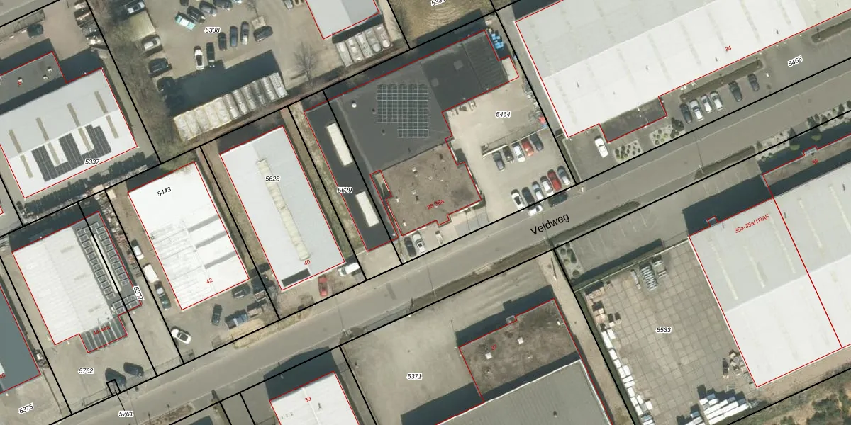 Het perceel waarop Veldweg 38 staat heeft een oppervlakte van 2027 m². Dit is een zeer groot perceel. De perceeloppervlakte wordt geregistreerd door het Kadaster. Gedetailleerde informatie over de maten van dit perceel kunt u vinden in het rapport Kadastrale kaart met maatvoering van Veldweg 38.
