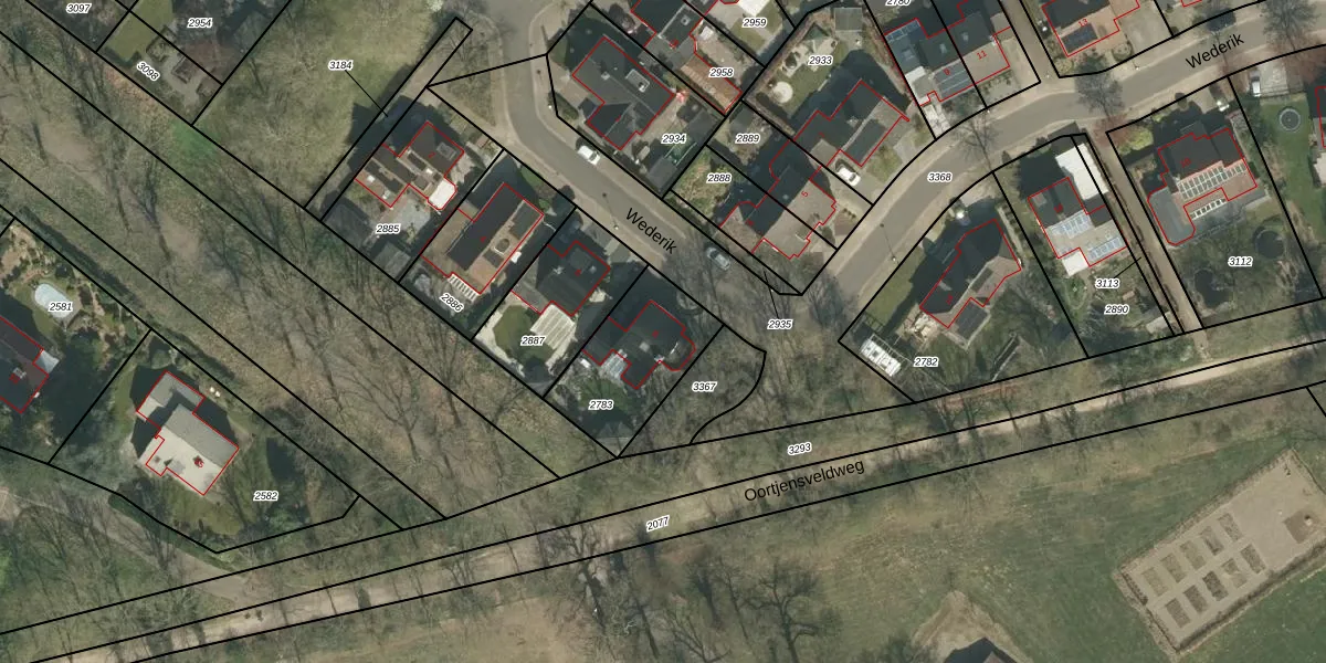 Het perceel waarop Wederik 8 staat heeft een oppervlakte van 375 m². Dit is een groot perceel. De perceeloppervlakte wordt geregistreerd door het Kadaster. Gedetailleerde informatie over de maten van dit perceel kunt u vinden in het rapport Kadastrale kaart met maatvoering van Wederik 8.