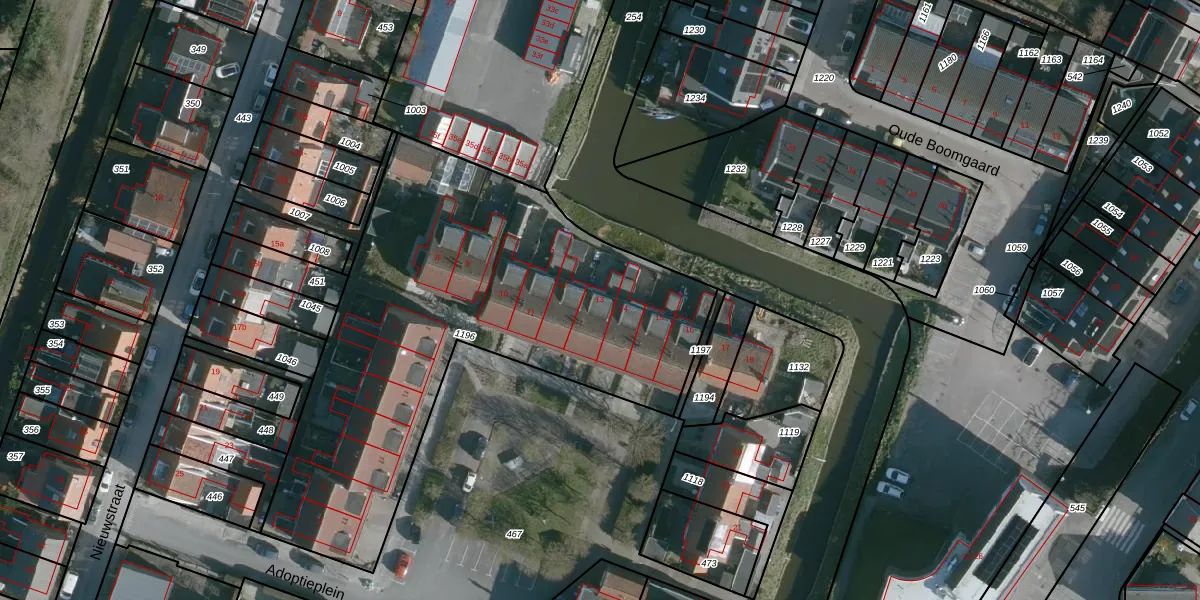 Adoptieplein 13 is gelegen op kadastraal perceel DLD00F1196. Deze kadastrale aanduiding is uniek en wordt gebruikt door het Kadaster om eigendomsrechten en andere zakelijke rechten vast te leggen. Het perceel maakt onderdeel uit van de kadastrale gemeente Dirksland.