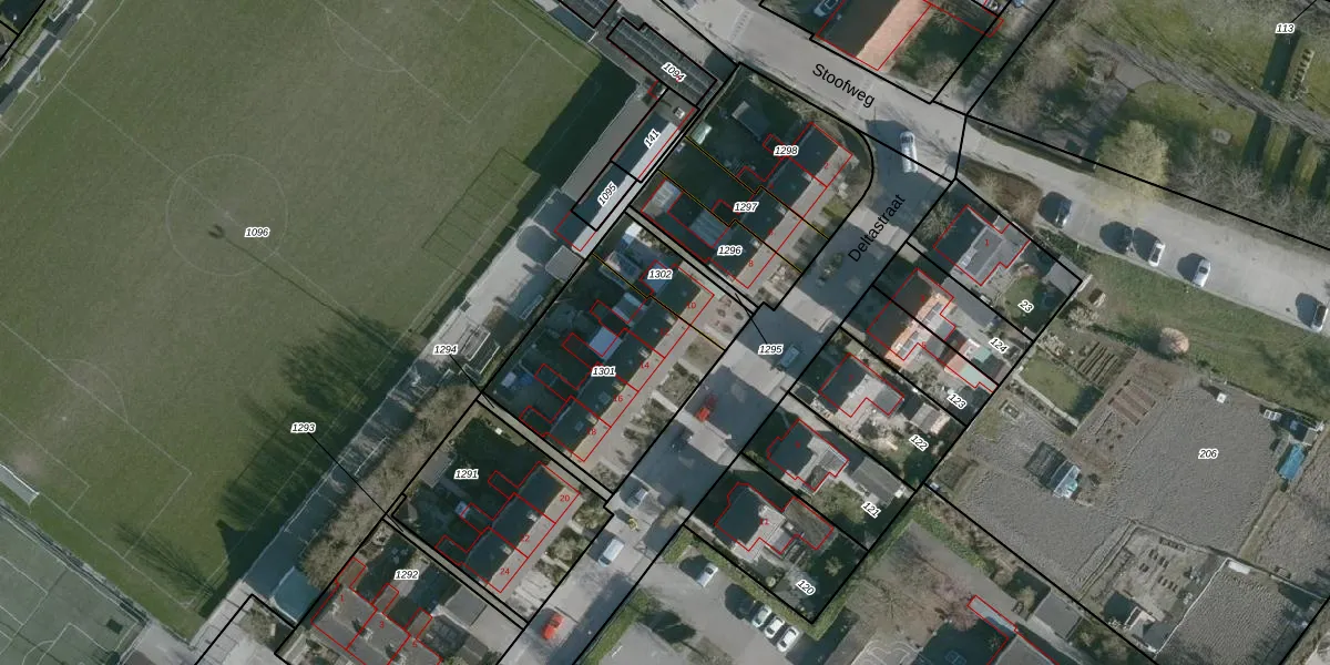 Deltastraat 12 is gelegen op kadastraal perceel DLD00F1301. Deze kadastrale aanduiding is uniek en wordt gebruikt door het Kadaster om eigendomsrechten en andere zakelijke rechten vast te leggen. Het perceel maakt onderdeel uit van de kadastrale gemeente Dirksland.