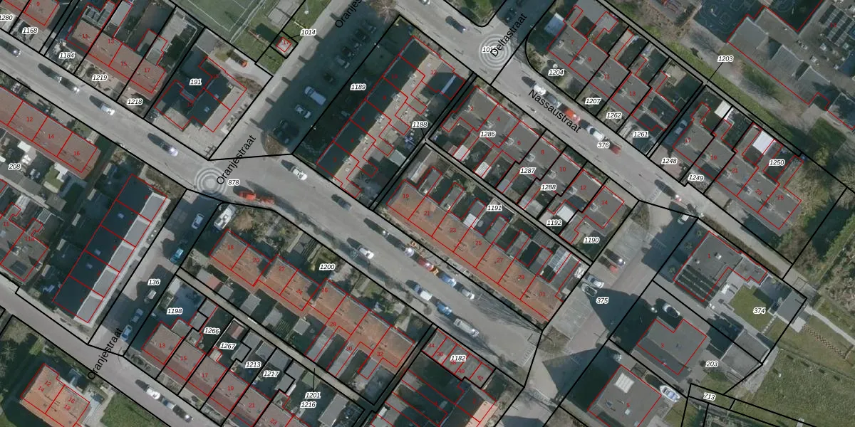 Het adres is gelegen op perceel 1191 in de sectie F en de kadastrale gemeente Dirksland. De kadastrale aanduiding is aldus DLD00-F-1191. Het perceel is kleiner dan gemiddeld in Dirksland. Het perceel is 943 m² groot, terwijl het gemiddelde ligt op 1,2 ha. De grootste perceeloppervlakte in de kadastrale gemeente is 5,01 km². De kleinste oppervlakte bedraagt 0 m². Er zijn 7 adressen aanwezig op het perceel. De huidige grenzen van het perceel zijn digitaal in de Basisregistratie Kadaster (BRK) geregistreerd op 25-03-2019.