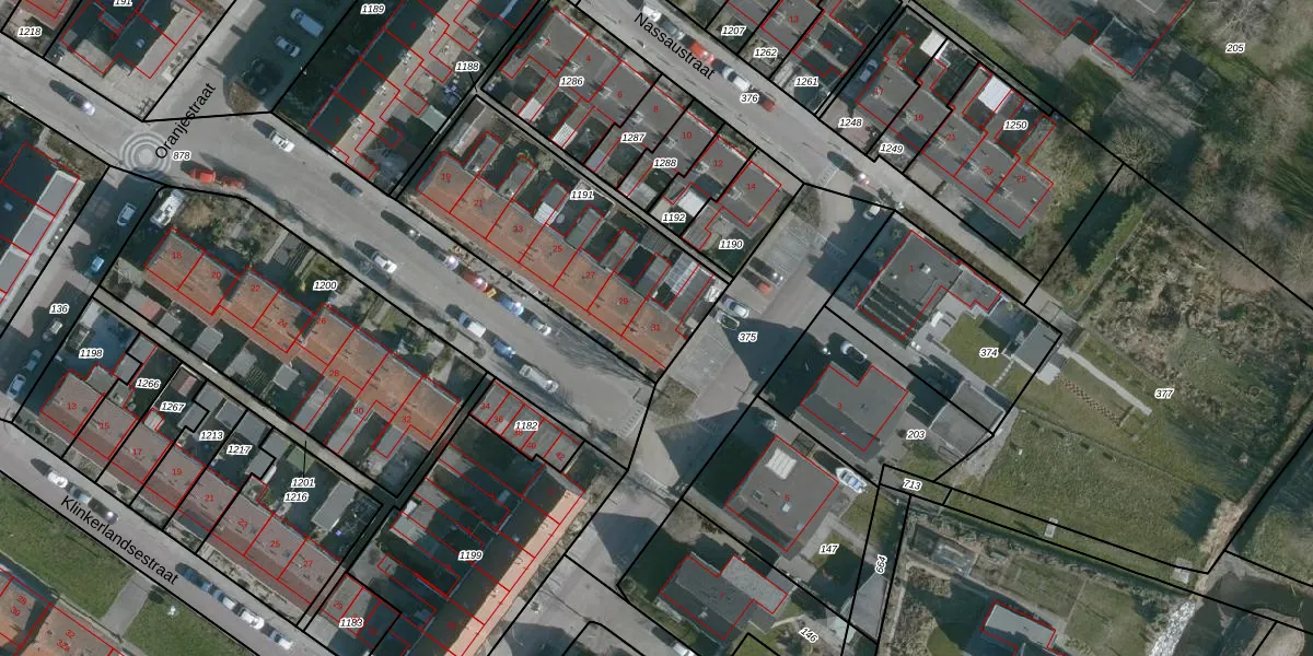 Het adres is gelegen op perceel 1191 in de sectie F en de kadastrale gemeente Dirksland. De kadastrale aanduiding is aldus DLD00-F-1191. Het perceel is kleiner dan gemiddeld in Dirksland. Het perceel is 943 m² groot, terwijl het gemiddelde ligt op 1,2 ha. De grootste perceeloppervlakte in de kadastrale gemeente is 5,01 km². De kleinste oppervlakte bedraagt 0 m². Op het perceel zijn 7 adressen aanwezig. De huidige grenzen van het perceel zijn digitaal in de Basisregistratie Kadaster (BRK) geregistreerd op 25-03-2019.