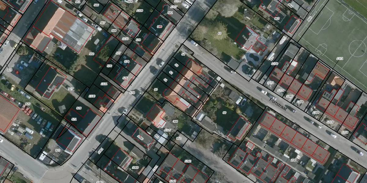Gebruik de zoekbalk of klik op een perceel voor informatie over de adressen binnen dit perceel.
