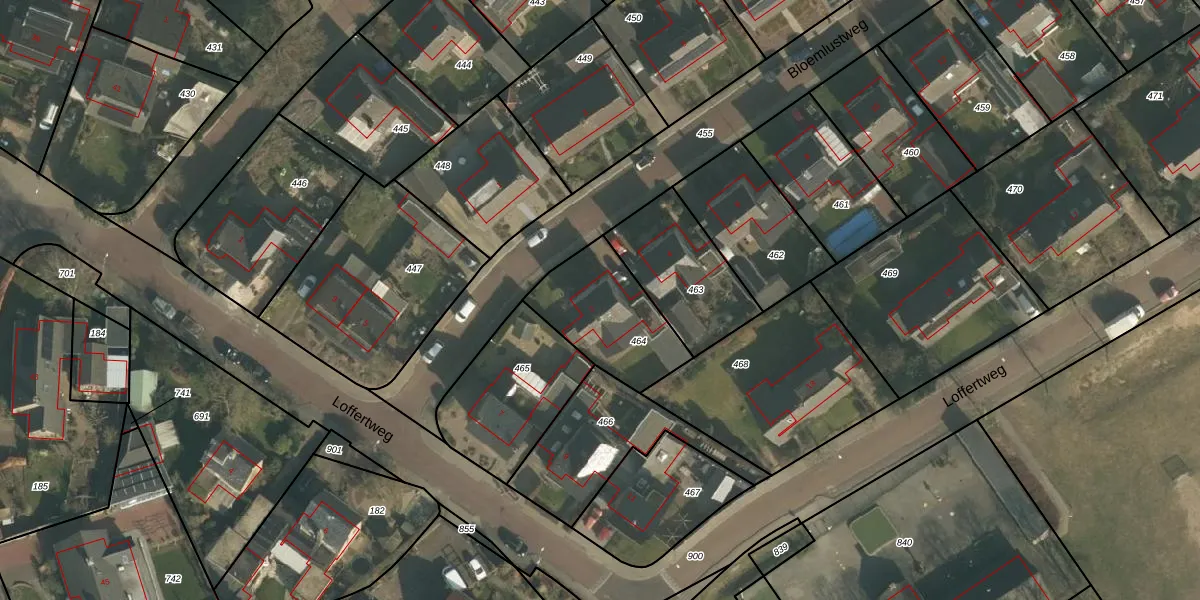 Gebruik de zoekbalk of klik op een perceel voor informatie over de adressen binnen dit perceel.