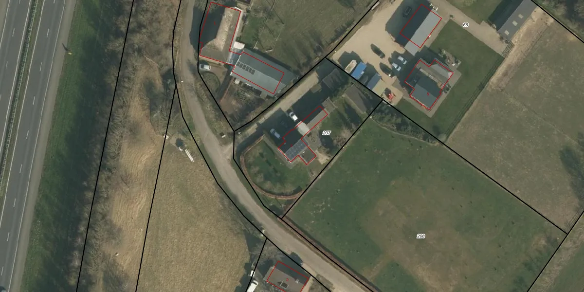 Het adres ligt op het perceel BHR02-D-207, dat zich in de kadastrale gemeente Bergharen bevindt. De gemiddelde perceelgrootte in Bergharen is 7924,16 m². Dit perceel is kleiner: de perceeloppervlakte bedraagt 1410 m². Het grootste perceel in de kadastrale gemeente is 42,1 ha. Het kleinste perceel heeft een oppervlakte van 0 m². Dit is het enige adres dat aanwezig is op het perceel. De huidige grenzen van het perceel zijn digitaal in de Basisregistratie Kadaster (BRK) geregistreerd op 15-05-2008.