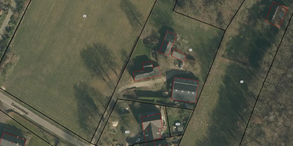 Dassenloop 9 is gelegen op kadastraal perceel BHR02D61. Deze kadastrale aanduiding is uniek en wordt gebruikt door het Kadaster om eigendomsrechten en andere zakelijke rechten vast te leggen. Het perceel maakt onderdeel uit van de kadastrale gemeente Bergharen.
