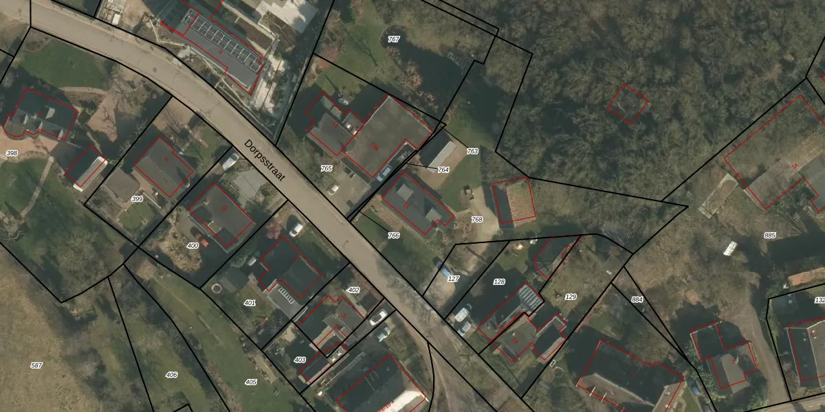 Het perceel waarop Dorpsstraat 15 staat heeft een oppervlakte van 1715 m². Dit is een zeer groot perceel. De perceeloppervlakte wordt geregistreerd door het Kadaster. Gedetailleerde informatie over de maten van dit perceel kunt u vinden in het rapport Kadastrale kaart met maatvoering van Dorpsstraat 15.