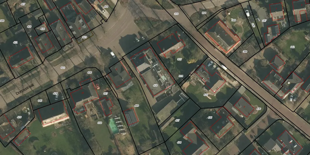 Het perceel waarop Dorpsstraat 25-G staat heeft een oppervlakte van 1015 m². Dit is een zeer groot perceel. De perceeloppervlakte wordt geregistreerd door het Kadaster. Gedetailleerde informatie over de maten van dit perceel kunt u vinden in het rapport Kadastrale kaart met maatvoering van Dorpsstraat 25-G.
