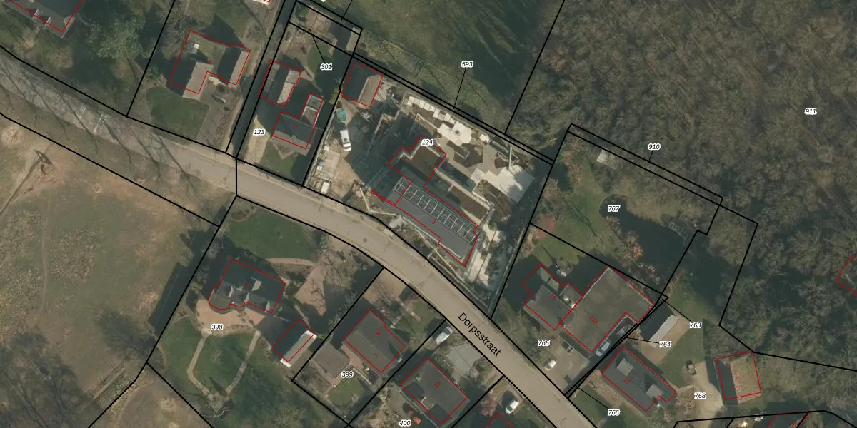 Het perceel waarop Dorpsstraat 9 staat heeft een oppervlakte van 1760 m². Dit is een zeer groot perceel. De perceeloppervlakte wordt geregistreerd door het Kadaster. Gedetailleerde informatie over de maten van dit perceel kunt u vinden in het rapport Kadastrale kaart met maatvoering van Dorpsstraat 9.