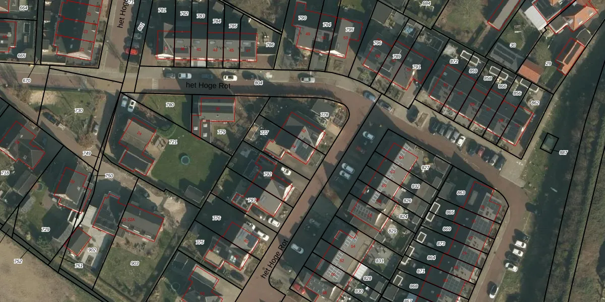 Het perceel waarop het Hoge Rot 34 staat heeft een oppervlakte van 259 m². Dit is een middelgroot perceel. De perceeloppervlakte wordt geregistreerd door het Kadaster. Gedetailleerde informatie over de maten van dit perceel kunt u vinden in het rapport Kadastrale kaart met maatvoering van het Hoge Rot 34.