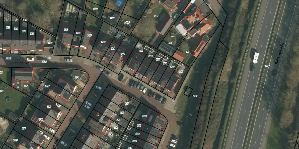 Het perceel waarop het Hoge Rot 65 staat heeft een oppervlakte van 128 m². Dit is een middelgroot perceel. De perceeloppervlakte wordt geregistreerd door het Kadaster. Gedetailleerde informatie over de maten van dit perceel kunt u vinden in het rapport Kadastrale kaart met maatvoering van het Hoge Rot 65.
