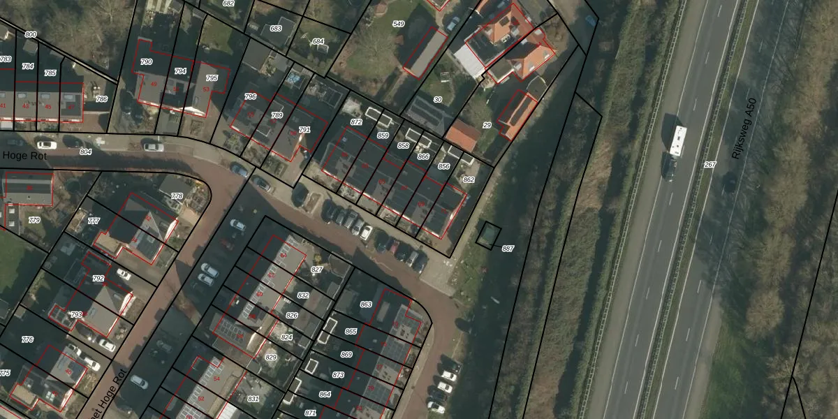 Het perceel waarop het Hoge Rot 69 staat heeft een oppervlakte van 130 m². Dit is een middelgroot perceel. De perceeloppervlakte wordt geregistreerd door het Kadaster. Gedetailleerde informatie over de maten van dit perceel kunt u vinden in het rapport Kadastrale kaart met maatvoering van het Hoge Rot 69.
