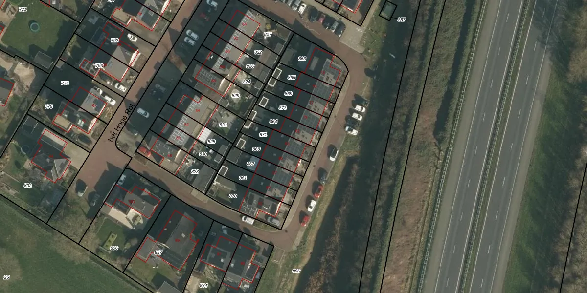 Het perceel waarop het Hoge Rot 83 staat heeft een oppervlakte van 138 m². Dit is een middelgroot perceel. De perceeloppervlakte wordt geregistreerd door het Kadaster. Gedetailleerde informatie over de maten van dit perceel kunt u vinden in het rapport Kadastrale kaart met maatvoering van het Hoge Rot 83.