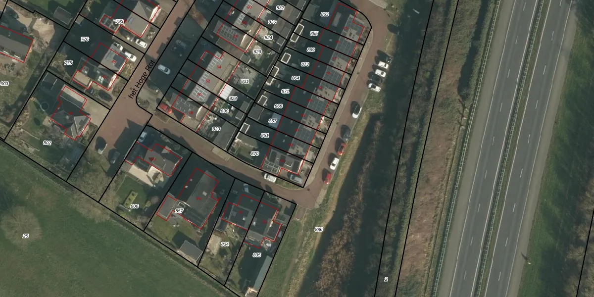 Het perceel waarop het Hoge Rot 89 staat heeft een oppervlakte van 148 m². Dit is een middelgroot perceel. De perceeloppervlakte wordt geregistreerd door het Kadaster. Gedetailleerde informatie over de maten van dit perceel kunt u vinden in het rapport Kadastrale kaart met maatvoering van het Hoge Rot 89.