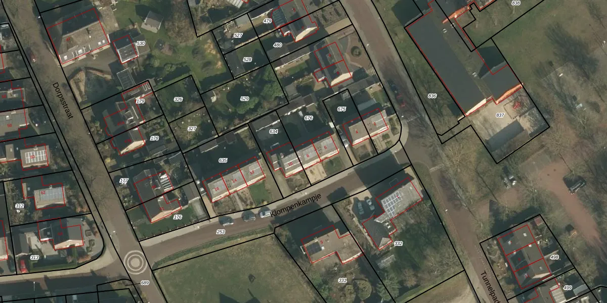 Het perceel waarop Klompenkampje 8 staat heeft een oppervlakte van 1209 m². Dit is een zeer groot perceel. De perceeloppervlakte wordt geregistreerd door het Kadaster. Gedetailleerde informatie over de maten van dit perceel kunt u vinden in het rapport Kadastrale kaart met maatvoering van Klompenkampje 8.