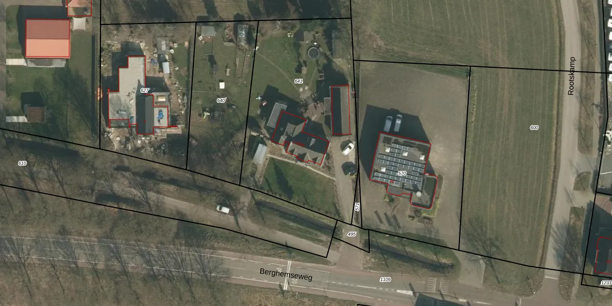 Het perceel waarop Berghemseweg 2 staat heeft een oppervlakte van 2128 m². Dit is een zeer groot perceel. De perceeloppervlakte wordt geregistreerd door het Kadaster. Gedetailleerde informatie over de maten van dit perceel kunt u vinden in het rapport Kadastrale kaart met maatvoering van Berghemseweg 2.