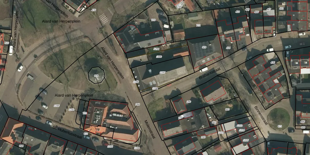 Het perceel waarop Brabantstraat 1-M staat heeft een oppervlakte van 537 m². Dit is een groot perceel. De perceeloppervlakte wordt geregistreerd door het Kadaster. Gedetailleerde informatie over de maten van dit perceel kunt u vinden in het rapport Kadastrale kaart met maatvoering van Brabantstraat 1-M.
