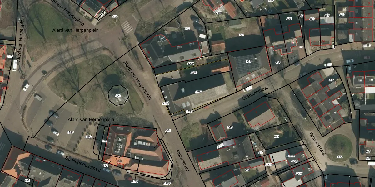 Het perceel waarop Brabantstraat 1-G staat heeft een oppervlakte van 537 m². Dit is een groot perceel. De perceeloppervlakte wordt geregistreerd door het Kadaster. Gedetailleerde informatie over de maten van dit perceel kunt u vinden in het rapport Kadastrale kaart met maatvoering van Brabantstraat 1-G.