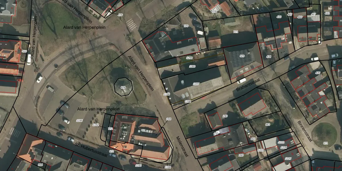 Het perceel waarop Brabantstraat 1-D staat heeft een oppervlakte van 537 m². Dit is een groot perceel. De perceeloppervlakte wordt geregistreerd door het Kadaster. Gedetailleerde informatie over de maten van dit perceel kunt u vinden in het rapport Kadastrale kaart met maatvoering van Brabantstraat 1-D.