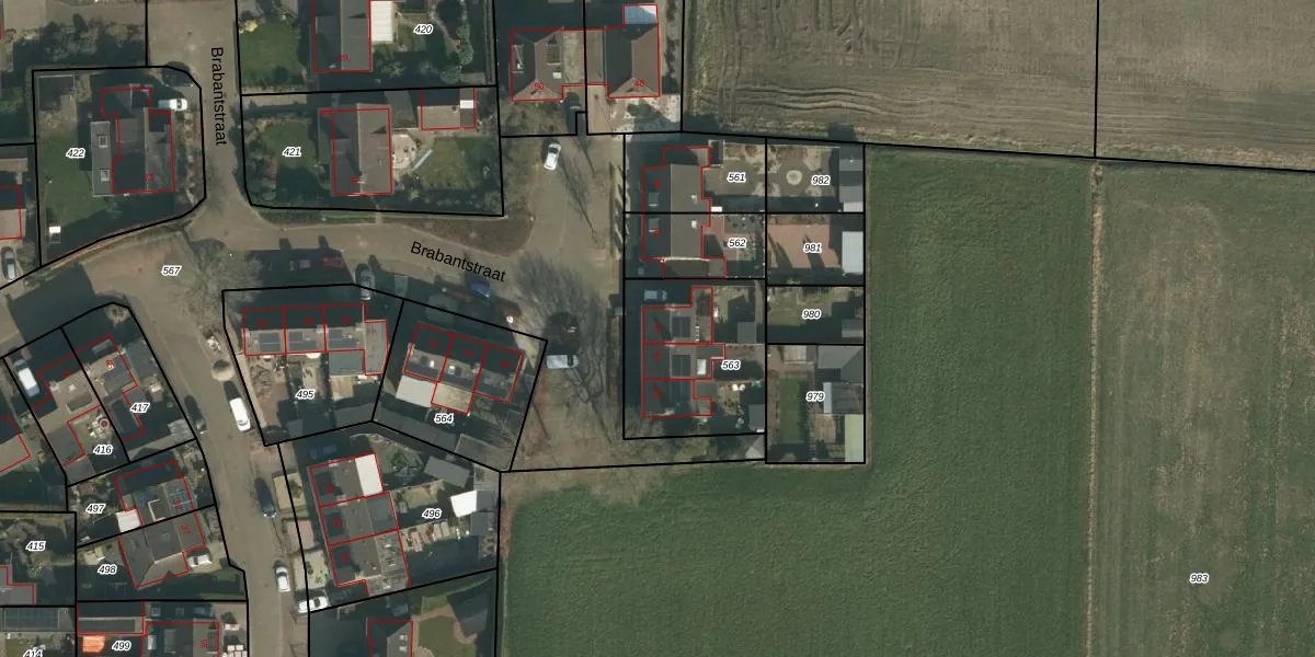 Het perceel waarop Brabantstraat 42 staat heeft een oppervlakte van 520 m². Dit is een groot perceel. De perceeloppervlakte wordt geregistreerd door het Kadaster. Gedetailleerde informatie over de maten van dit perceel kunt u vinden in het rapport Kadastrale kaart met maatvoering van Brabantstraat 42.