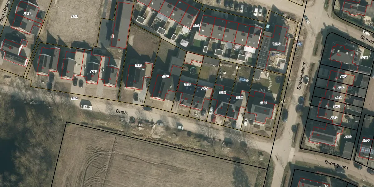 Gebruik de zoekbalk of klik op een perceel voor informatie over de adressen binnen dit perceel.