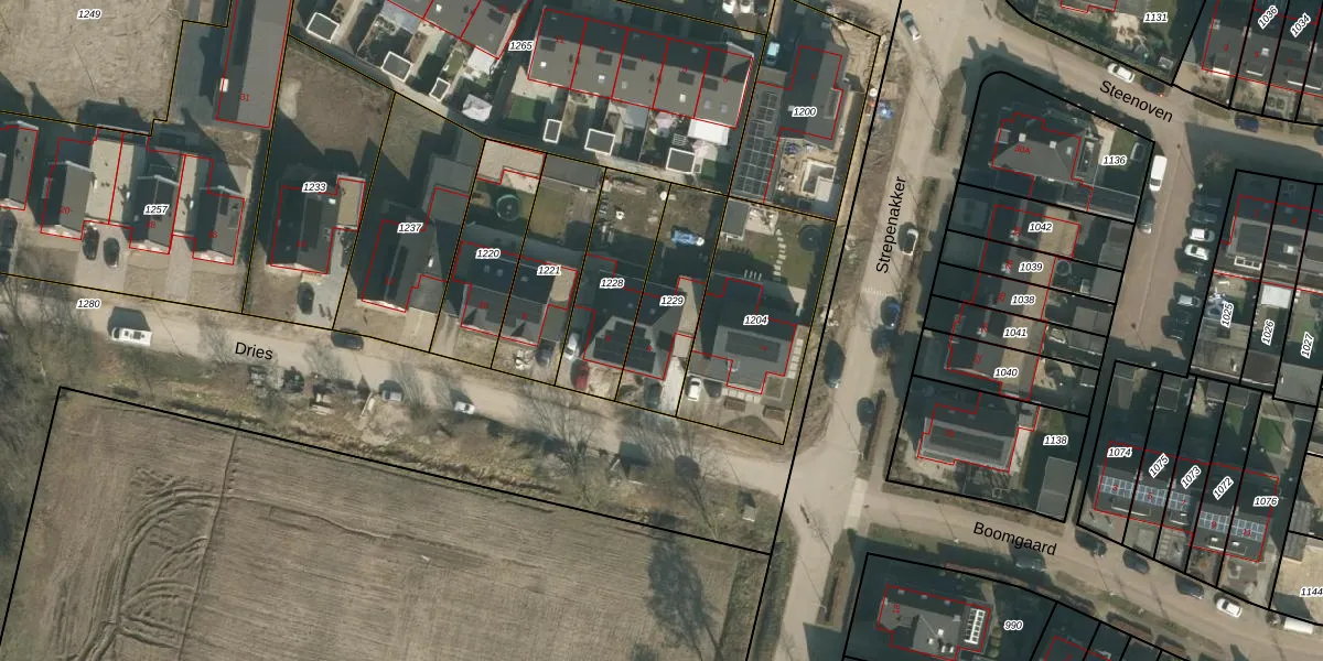 Het perceel waarop Dries 4 staat heeft een oppervlakte van 316 m². Dit is een groot perceel. De perceeloppervlakte wordt geregistreerd door het Kadaster. Gedetailleerde informatie over de maten van dit perceel kunt u vinden in het rapport Kadastrale kaart met maatvoering van Dries 4.