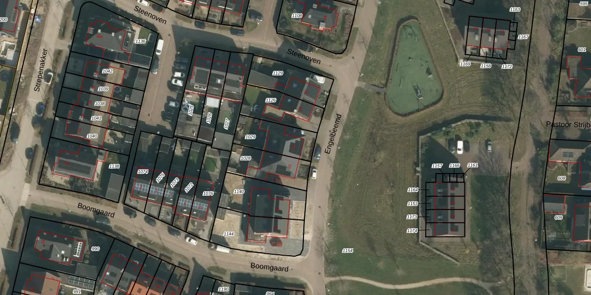 Gebruik de zoekbalk of klik op een perceel voor informatie over de adressen binnen dit perceel.