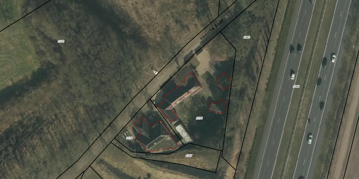 Het perceel waarop Heesche Baan 4 staat heeft een oppervlakte van 1850 m². Dit is een zeer groot perceel. De perceeloppervlakte wordt geregistreerd door het Kadaster. Gedetailleerde informatie over de maten van dit perceel kunt u vinden in het rapport Kadastrale kaart met maatvoering van Heesche Baan 4.