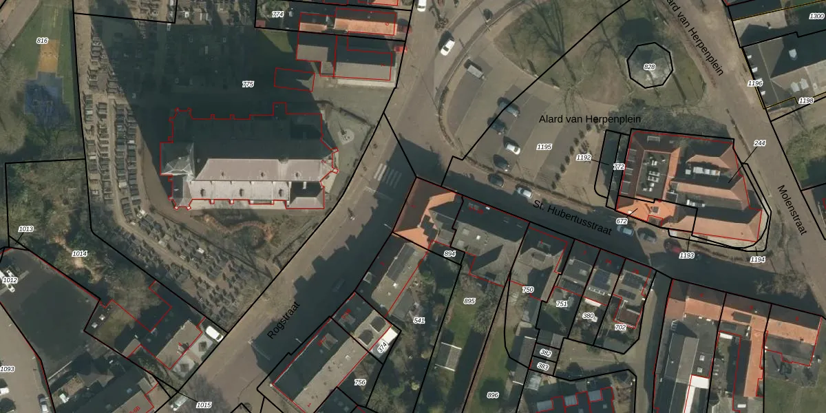 Gebruik de zoekbalk of klik op een perceel voor informatie over de adressen binnen dit perceel.