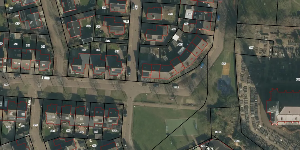 Het perceel waarop Runstuk 26 staat heeft een oppervlakte van 1188 m². Dit is een zeer groot perceel. De perceeloppervlakte wordt geregistreerd door het Kadaster. Gedetailleerde informatie over de maten van dit perceel kunt u vinden in het rapport Kadastrale kaart met maatvoering van Runstuk 26.