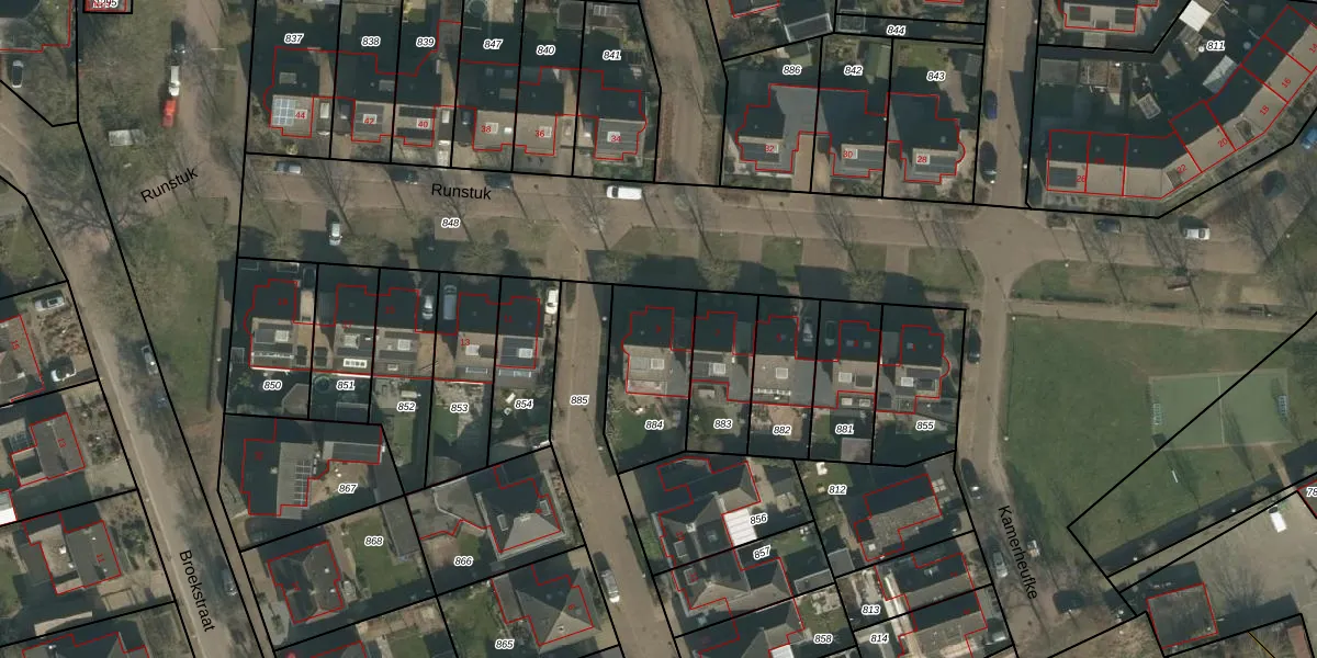 Het perceel waarop Runstuk 9 staat heeft een oppervlakte van 334 m². Dit is een groot perceel. De perceeloppervlakte wordt geregistreerd door het Kadaster. Gedetailleerde informatie over de maten van dit perceel kunt u vinden in het rapport Kadastrale kaart met maatvoering van Runstuk 9.