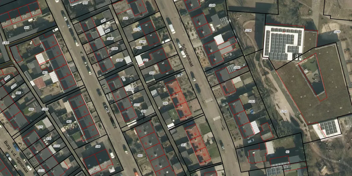Het perceel waarop Schoolstraat 12 staat heeft een oppervlakte van 595 m². Dit is een groot perceel. De perceeloppervlakte wordt geregistreerd door het Kadaster. Gedetailleerde informatie over de maten van dit perceel kunt u vinden in het rapport Kadastrale kaart met maatvoering van Schoolstraat 12.