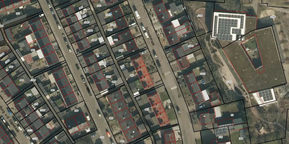 Het perceel waarop Schoolstraat 14 staat heeft een oppervlakte van 595 m². Dit is een groot perceel. De perceeloppervlakte wordt geregistreerd door het Kadaster. Gedetailleerde informatie over de maten van dit perceel kunt u vinden in het rapport Kadastrale kaart met maatvoering van Schoolstraat 14.