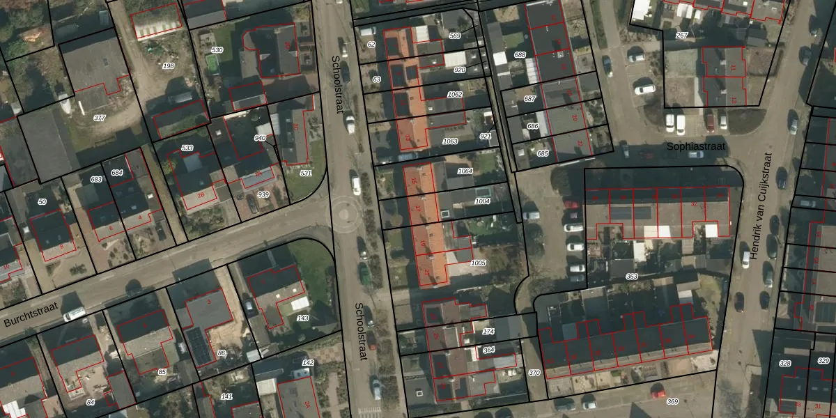 Het perceel waarop Schoolstraat 17 staat heeft een oppervlakte van 225 m². Dit is een middelgroot perceel. De perceeloppervlakte wordt geregistreerd door het Kadaster. Gedetailleerde informatie over de maten van dit perceel kunt u vinden in het rapport Kadastrale kaart met maatvoering van Schoolstraat 17.