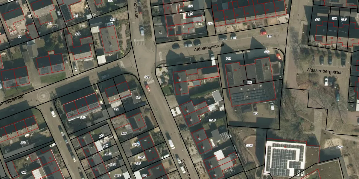 Het perceel waarop Schoolstraat 33 staat heeft een oppervlakte van 1930 m². Dit is een zeer groot perceel. De perceeloppervlakte wordt geregistreerd door het Kadaster. Gedetailleerde informatie over de maten van dit perceel kunt u vinden in het rapport Kadastrale kaart met maatvoering van Schoolstraat 33.