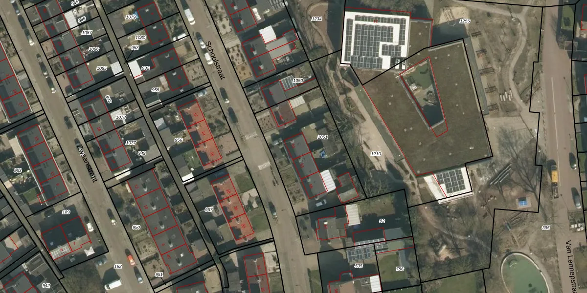 Het perceel waarop Schoolstraat 51 staat heeft een oppervlakte van 960 m². Dit is een groot perceel. De perceeloppervlakte wordt geregistreerd door het Kadaster. Gedetailleerde informatie over de maten van dit perceel kunt u vinden in het rapport Kadastrale kaart met maatvoering van Schoolstraat 51.