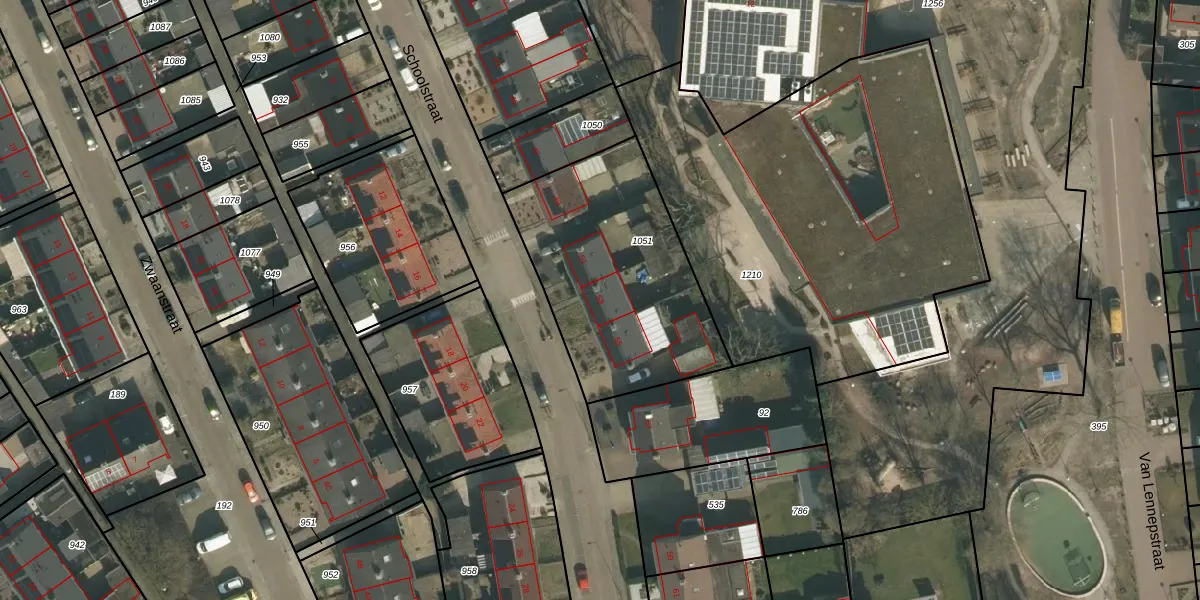 Het perceel waarop Schoolstraat 53 staat heeft een oppervlakte van 960 m². Dit is een groot perceel. De perceeloppervlakte wordt geregistreerd door het Kadaster. Gedetailleerde informatie over de maten van dit perceel kunt u vinden in het rapport Kadastrale kaart met maatvoering van Schoolstraat 53.